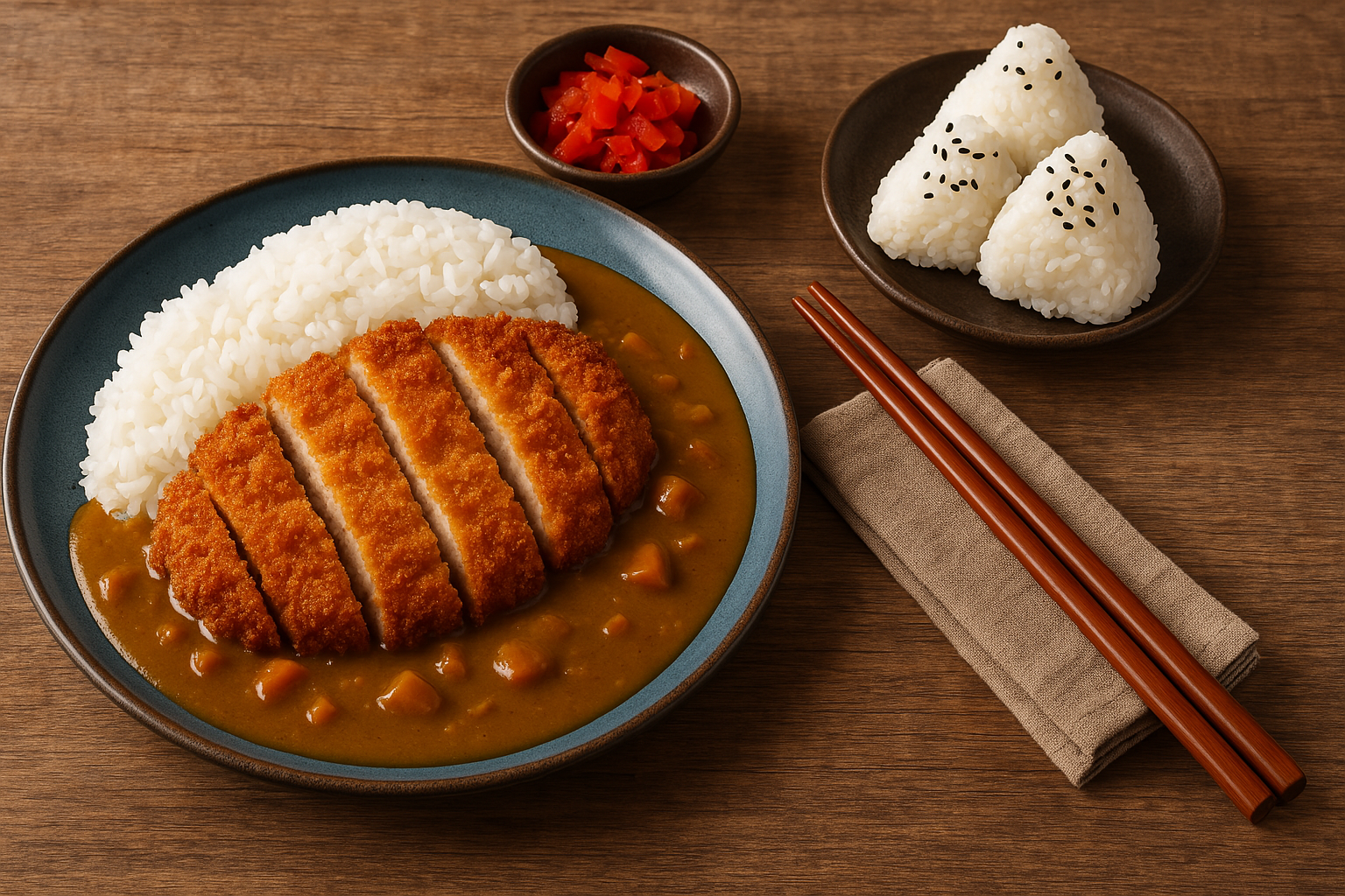 Japanese Chicken Katsu Curry with Onigiri Rice